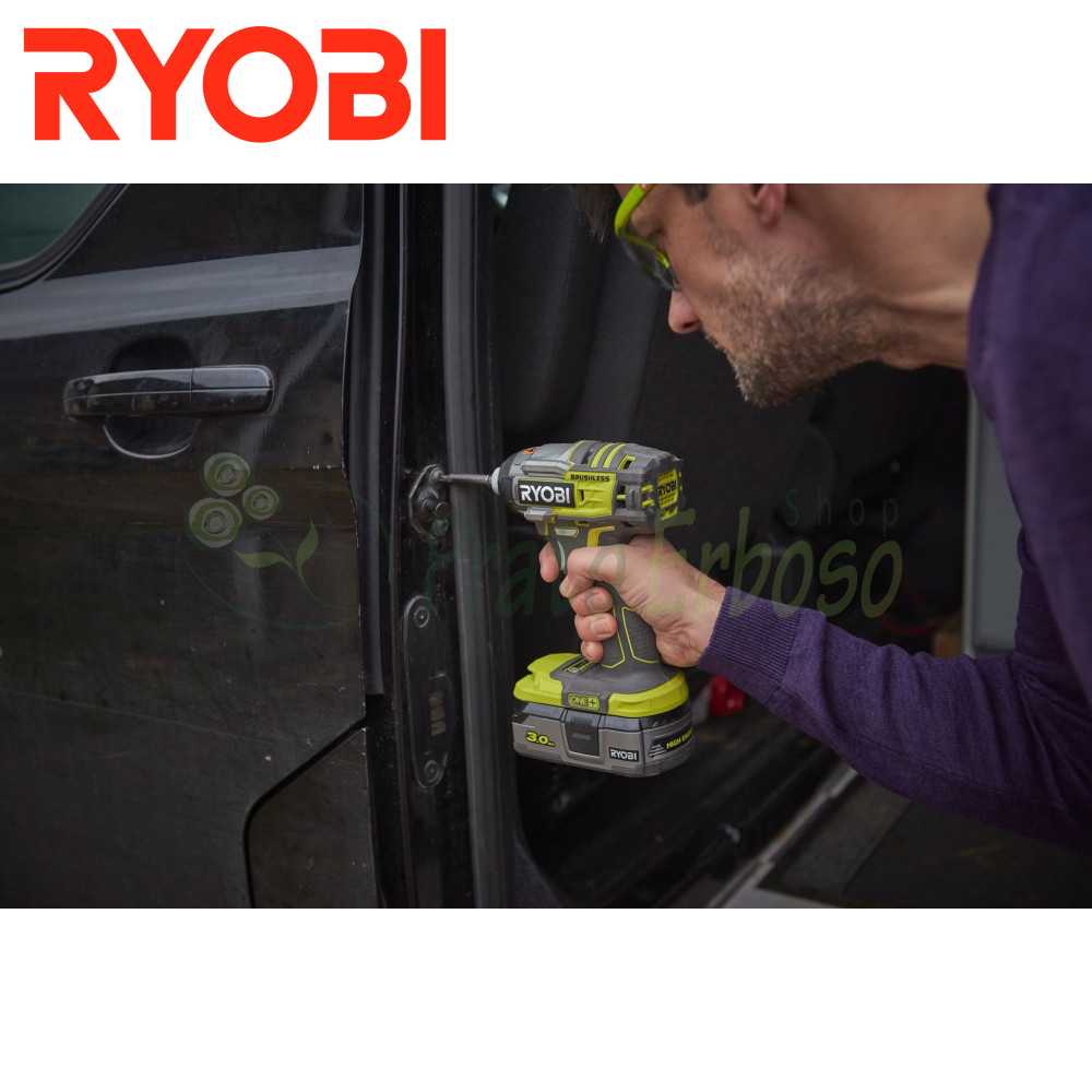- Teknologjia "Brushless" e Ryobi përdor elektronikë të patentuar të aftë për të siguruar 40% më shumë autonomi dhe 20% më shumë fuqi sesa një stërvitje motorike me furçë normale.