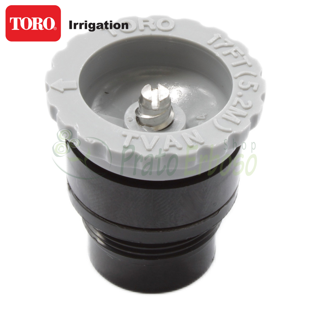 La gittata dell'ugello TVAN-17 è di 5.2 metri. Il filetto è 1/2" maschio ed è possibile montarlo sui porta ugelli della Toro Irrigazione serie 570 e sugli irrigatori LPS.